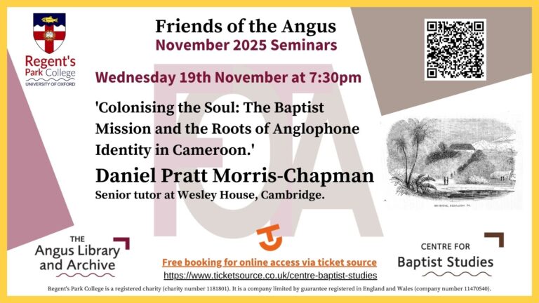 Thursday 28 October: Professor Isabel Rivers (Queen Mary University of London): ‘Joseph Angus as moral philosophy tutor at Stepney and Regent’s Park’